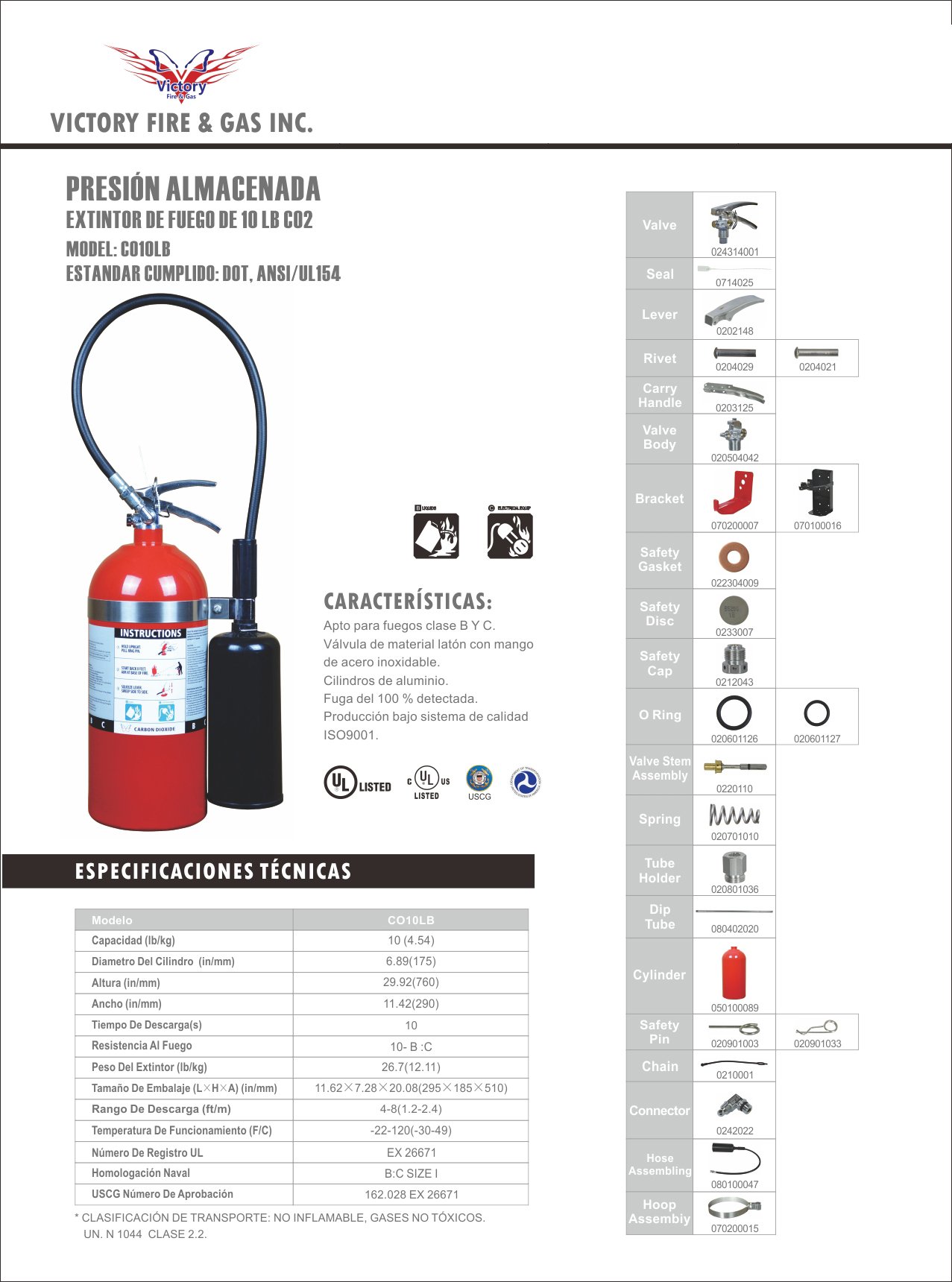 | Peso del extintor (lb/kg) | 13.29 (6.03) |
